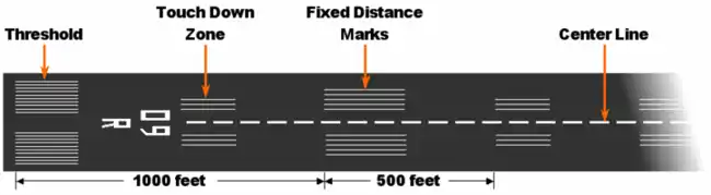 - Touchdown zone lights (TDZL) – rows of white light bars (with three in each row) at ၃၀ or ၆၀ မီတာ (၉၈ or ၁၉၇ ပေ) intervals on either side of the centerline for ၉၀၀ မီတာ (၃,၀၀၀ ပေ).