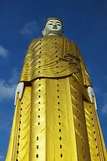 လေးကျွန်းစကြာ ရပ်တော်မူမြတ်စွာဘုရားကြီးသည် ၁၁၆ မီတာ (သို့မဟုတ်) ၃၈၁ ပေ အမြင့်ဆောင်သည့် ကမ္ဘာ့တတိယအကြီးဆုံး ရုပ်ပွားတော်မြတ်ကြီးဖြစ်သည်။ ရုပ်ပွားတော်မြတ်ကြီးသည် ၁၃.၅ မီတာ(၄၄ ပေ)အမြင့်ရှိ ပလ္လင်တော်ကြီးပေါ်တွင် ရပ်တော်မူလျက်အသွင်ဟန်ဖြင့် တည်ရှိပြီး၊ မြန်မာနိုင်ငံ၊ မုံရွာမြို့အနီး ခတက္ကန်တောင်ရွာ၊ ဇီးဖြူတောင်ပေါ်တွင် တည်ရှိသည်။ ၁၉၉၅ ခု၊ မေလ(၈)ရက်၊ နံနက်(၉:ဝဝ)နာရီတွင် ပန္နက်တင်မင်္ဂလာပြုလုပ်ပြီး၊ ၁၉၉၅ ခု၊ ဩဂုတ်လ(၈)ရက်၊ နံနက် (၈:၂ဝ)နာရီတွင် အုတ်မြစ်စီမင်္ဂလာပြုလုပ်ခဲ့သည်။ ၂ဝဝ၈ ခု၊ ဖေဖော်ဝါရီလ (၂ဝ)ရက်၊ နံနက်(၇:၃ဝ)နာရီတွင် သံဃာတော်အပါးတစ်ထောင်နှင့် ဗုဒ္ဓါဘိသေက အနေကဇာတင်မင်္ဂလာ ပြုလုပ်နိုင်ခဲ့သည်။ [1] ကမ္ဘာ့အံ့ချီးဖွယ် လေးကျွန်းစကြာ ရပ်တော်မူမြတ်စွာဘုရားကြီးကို မဟာဗောဓိတထောင်သာသနာ့နယ်မြေ စတင်ထူထောင်တော်မူသော မဟာဗောဓိတထောင်ပဓာနနာယကဆရာတော်ဘုရားကြီး အဂ္ဂမဟာသဒ္ဓမ္မဇောတိကဓဇ ဘဒ္ဒန္တနာရဒမထေရ် စတင်တည်ထားကိုးကွယ်တော်မူခဲ့သည်။ ဆရာတော်ဘုရားကြီးမှာ ၂ဝဝ၆ ခု၊ နိုဝင်ဘာလ (၂၂)ရက်နေ့တွင် ဘဝနတ်ထံပျံလွန်တော်မူခဲ့သည်။