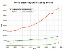 - Natural gas: turbines are driven directly by gases produced by combustion. Combined cycle are driven by both steam and natural gas. They generate power by burning natural gas in a gas turbine and use residual heat to generate steam. At least 20% of the worlds electricity is generated by natural gas.
