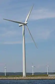 - The windmill was a very early wind turbine. In a solar updraft tower wind is artificially produced. Before 2010 less than 2% of the worlds electricity was produced from wind.