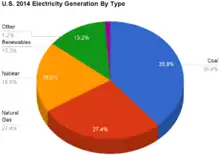 - ကျောက်မီးသွေးကို အသုံးပြုကာ ရေကိုဆူပွက်စေခြင်းဖြင့် လျှပ်စစ်ဓာတ်ထုတ်လုပ်သည်။ လျှပ်စစ်ထုတ်လုပ်ခြင်း၏ ၄၁%မှာ ဤနည်းလမ်းဖြင့် ထုတ်လုပ်သည်။[1]
