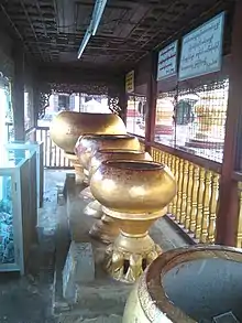သို့ဖြစ်၍ သပိတ်သည်ကိုးလုံးရှိသည်။အရွယ်ပမာဏအားဖြင့်ချက်ပြီးထမင်း ဟင်းအစုံသုံးစလယ်မလျော့ မပိုဝင်ဆံ့သောသပိတ်သည် သပိတ်ငယ်မည်သည်။ ဤအချင့်ကိုမူတည်၍ ချက်ပြီးထမင်းဟင်း စုံသုံးစလယ်ထည့်သောအခါ လျော့ဟောက်နေလျင် အငယ်ထက် ကြီးသောသပိတ်၊ ပိုမောက်နေလျှင် အငယ့်အောက် ငယ်သော သပိတ်မည်သည်။ ချက်ပြီး ထမင်းဟင်းအစုံတစ်ပြည့်တစ်ခွက် (သုံးခွက်) မလျှော့မပိုဝင်ဆံ့သောသပိတ်သည် သပိတ်လတ်မည်သည်။ ဤအချင့်ကိုမူတည်၍ ဤချက်ပြီးထမင်းဟင်း အစုံထည့်သောအခါ လျော့ဟောက်နေလျှင်အလတ်ထက်ကြီး သောသပိတ်၊ ပိုမောက်နေလျှင် အလတ်အောက်ငယ်သော သပိတ်မည်သည်။ ချက်ပြီးထမင်းဟင်း အစုံသုံးပြည်ဝင်ဆံ့သော သပိတ်သည် သပိတ်ကြီးမည်သည်။