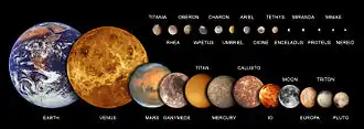 ကမ္ဘာနှင့် လကမ္ဘာတို့သည် လကမ္ဘာထုထည်နှင့် ကမ္ဘာထုထည်တို့၏ အချိုးအားဖြင့် တွက်ကြည့်ရသော် အခြားသော သဘာဝ ဂြိုဟ်တုများထက် တမူထူးခြားသည်။ လကမ္ဘာသည် ကီလိုမီတာ ၃၄၇၄ (၂၁၅၈ မိုင်) ရှိပြီး ကမ္ဘာ့ထုထည်၏ ၀.၂၇ ရာခိုင်နှုန်း ရှိလေသည်။[5] ၁၅၄၃ ခုနှစ် မတိုင်ခင်ထိ လကမ္ဘာအား ဂြိုဟ်တစ်ခုအဖြစ် ယူဆခဲ့ကြသည်။