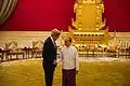 ဦးသိန်းစိန်နှင့်အတူ ဟီလာရီ ကလင်တန်အား တွေ့ရစဉ်