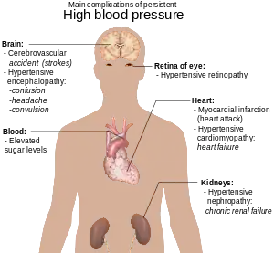 | ရှုပ်ထွေးမှုများ | နှလုံးသွေးကြောကျဉ်းရောဂါ၊ လေဖြတ်ခြင်း၊ နှလုံးညှစ်အား လျော့နည်းလာခြင်း (heart failure), peripheral arterial disease, အမြင်အာရုံဆုံးရှုံးခြင်း၊ နာတာရှည်ကျောက်ကပ်ရောဂါ၊ စိတ်ပိုင်းဆိုင်ရာဖောက်ပြန်မှု(dementia) [2][3][4][5] |