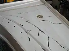 - ဂျက်ခ်တွင် ပလက်ထရမ်ကို ရေပြင်ညီနီးပါးပုံစံပြုလုပ်ထားသည်။[မှတ်စု 5] ယင်းပလက်ထရမ် ရှိနေသော နေရာသည် လျှာ (tongue) ဖြစ်သည်။ ထိုလျှာကို ဝင်ရိုးလေးတစ်ခုဖောက်လုပ်ထားသည်။