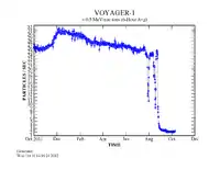 - Between late August and early September 2012, Voyager I has witnessed a sharp drop in protons from the sun, from 25 particles per sec in late August, to about 2 particles per second by early October.[35]