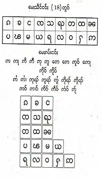 - ၁၉၉ဝ ပြည့်နှစ်တွင် ပထမအကြိမ်ထုတ်သော မြန်မာစာကျမ်းပြုဆရာကြီး မောင်ခင်မင်{ဦးခင်အေး}(ဓနုဖြူ)၏ ၁၉၈၇ခုနှစ်၊ စာပေဗိမာန် စာမူဆုရ သုတပဒေသာ(ဝိဇ္ဇာပညာရပ်) “မြန်မာစကား မြန်မာစာ ရုပ်ပုံလွှာ”