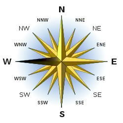 သံလိုက်အိမ်မြောင်ရှိ အနောက်အရပ် (အမည်းရောင်ခြယ်ထားသည်)