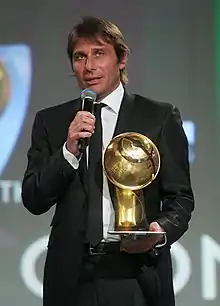 ![]() Conte receiving the Globe Soccer Best Coach of the Year award in 2013 | ||||||||||||||||||