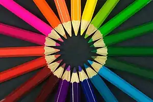 ပန်းချီဆရာသုံး အရောင်ဆေးများနှင့် အခြား မှင်အမျိုးမျိုး၊ ဆိုးဆေး၊ သုတ်ဆေးအမျိုးမျိုးတို့တွင် အနီ၊ အဝါနှင့်အပြာ အရောင်သုံးမျိုးရှိက ထိုအရောင်များမှ အခြား မိမိလိုရာ အရောင်များကို စပ်ယူနိုင်သဖြင့် ထို အရောင်သုံးမျိုးကို မူလအရောင်များဟု ခေါ်စမှတ်ပြုကြသည်။ အနီနှင့် အဝါကိုစပ်လျှင် လိမ္မော်ရောင် ကိုလည်းကောင်း၊ အဝါနှင့်အပြာကို စပ်လျှင် အစိမ်းရောင်ကို လည်းကောင်း၊ အပြာနှင့်အနီကိုစပ်လျှင် ခရမ်းရောင်ကို လည်းကောင်းရ၍ ထိုသို့ တစ်ဆင့်ခံရရှိသော အရောင်များကို တစ်ခါတစ်ရံ တစ်ဆင့်ခံ အရောင်များဟု ခေါ်ကြပြန်သည်။ တစ်ဖန် အနီနှင့် စိမ်းပြာကိုလည်းကောင်း၊ အဝါနှင့် မဲပြာကိုလည်းကောင်း ရောစပ်လျှင် အနက်ရောင်ရ၍ ထိုသို့ အနက်ရောင်ပေးသော အရောင်စုံတွဲများကိုမူ ဖြည့်ဘက်အရောင်များ ဟူ၍ ခေါ်ကြလေသည်။