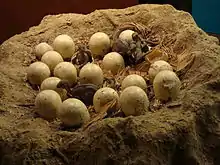 ရုပ်ကြွင်းမှတ်တမ်းမှ လေ့လာရသလောက်၊ အတော်များများလည်း ဖြစ်နိုင်သည်၊ အားလုံးပင် ဖြစ်နိုင်သည်။ ဒိုင်နိုဆောသည် ဥဥသည်ဟု သိရသည်။ ရုပ်ကြွင်းပညာရှင်များသည် လျှောက်ဥထားသော ဥပုံ ရှိသည့် အသိုက်နေရာများကို ရှာဖွေ ဖော်ထုတ်နိုင်ခဲ့သည်။ အဆိုပါထဲတွင် ပုံမှန် ဥဥသော ပုံစံ၊ ကွဲနေသော ဥများ၊ သို့မဟုတ် သားပေါက်ထားသည့် ဥပုံစံတို့ ပါဝင်သည်။ [1]