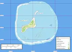 ပင်မကျွန်းဖြစ်သော အိုအီးနိုးသည် ဧရိယာ ၀.၅ စတုရန်း ကီလိုမီတာ (၁၂၀ ဧက) ခန့်ရှိပြီး သစ်တောရှိကာ pandanus နှင့် အုန်းပင်များဖြင့် ပြည့်နေသည်။ အလယ်ရေအိုင်၏ အနောက်တောင်ဖက်တွင် တည်ရှိသည်။ ကျွန်းပေါ်တွင် ရေပိုက်ခေါင်းတစ်ခုကို တပ်ဆင်ထားသည်။[3] အမြင့်ဆုံး ပင်လယ်ရေမျက်နှာပြင်အမြင့်မှာ ၅ မီတာ (၁၆ ပေ) အောက်ဖြစ်သည်။ စန္ဒီကျွန်း (သို့မဟုတ် ကျွန်းများ) သည် အရှေ့မြောက်ဖက်တွင် တည်ရှိပြီး ပေါ်ပင်ကျွန်းတစ်ခု ဖြစ်သည်။ ကျွန်းငယ်သုံးခုသည် ပင်မကျွန်း၏ တောင်ဖက်နှင့် အနောက်ဖက်တွင် တည်ရှိသည်။