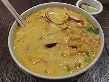 | အဓိက ပါဝင်ပစ္စည်း | ဂျုံခေါက်ဆွဲ၊ ကြက်သား၊ အုန်းနို့ဟင်းရည် |