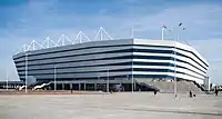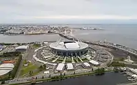 - စိန့်ပီတာစဘတ်မြို့: စိန့်ပီတာစဘတ် အားကစားကွင်း (ဖီဖာကမ္ဘာ့ဖလားကာလအတွင်း ဝင်ဆန့်သော ပရိသတ်ဦးရေ: ၆၇,၀၀၀). ၂၀၀၇ ခုနှစ်တွင် အားကစားကွင်းတည်ဆောက်ရေးအား စတင်ခဲ့ပြီး ၂၀၁၆ ခုနှစ် ဒီဇင်ဘာလ ၂၉ ရက်တွင်မှ တရားဝင်ပြီးစီးခဲ့ကြောင်း ဖော်ပြခဲ့သည်။[32] ဤအားကစားကွင်း၌ ၂၀၁၇ ဖီဖာ တိုက်ကြီးများဖလားကို ကျင်းပပေးခဲ့ပြီး ၂၀၁၈ ဖီဖာကမ္ဘာ့ဖလားနှင့် ၂၀၂၀ ယူအီးအက်ဖ်အေ ချန်ပီယံရှစ်ပြိုင်ပွဲများကိုလည်း လက်ခံကျင်းပေပေးသွား ဖြစ်သည်။