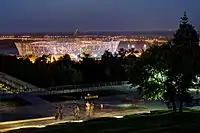 - ဗော်ဂါဂရတ်မြို့: ဗော်ဂါဂရတ် အရီနာ (ဖီဖာကမ္ဘာ့ဖလားကာလအတွင်း ဝင်ဆန့်သော ပရိသတ်ဦးရေ: ၄၅,၀၀၀)။ ဗော်ဂါဂရတ်မြို့၏ ပင်မအရီနာကို အမိမြေမှခေါ်သံ ရုပ်ထုကြီးအောက် ယခင်က ဖြိုချခဲ့သော ဗဟိုအားကစားကွင်းနေရာတွင်ပင်တည်ဆောက်ခဲ့သည်။ ၂၀၁၈ ခုနှစ် ဧပြီလ ၃ ရက်နေ့တွင် တည်ဆောက်ပြီးစီးအပ်နှံ့ခဲ့သည်။[31]