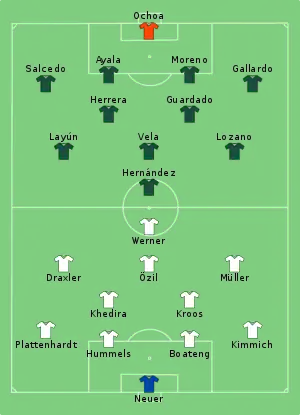 - Tactical Line-up – Group F – Germany-Mexico (PDF)။ Fédération Internationale de Football Association (၁၇ ဇွန် ၂၀၁၈)။
