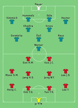 - Tactical Line-up – Group F – Korea Republic v Germany။ Fédération Internationale de Football Association (၂၇ ဇွန် ၂၀၁၈)။