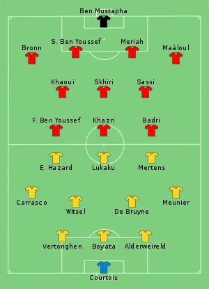 - Tactical Line-up – Group G – Belgium v Tunisia။ Fédération Internationale de Football Association (၂၃ ဇွန် ၂၀၁၈)။ ၂၃ ဇွန် ၂၀၁၈ တွင် မူရင်းအား မော်ကွန်းတင်ပြီး။