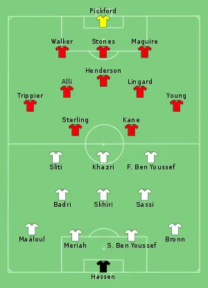 - Tactical Line-up – Group G – Tunisia v England။ Fédération Internationale de Football Association (၁၈ ဇွန် ၂၀၁၈)။ ၁၈ ဇွန် ၂၀၁၈ တွင် မူရင်းအား မော်ကွန်းတင်ပြီး။