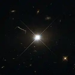 ![]() ဟာဘယ် အာကသမှန်ပြောင်းမှ ရိုက်ယူထားသော ကွေဆာ 3C 273 [1] | |