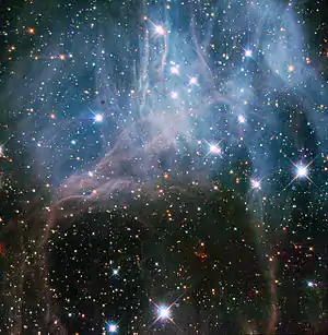 ![]() NGC 2040 is a very loose star cluster whose stars have a common origin and are drifting together through space. Credit: ESA/Hubble, NASA and D. A Gouliermis. | |