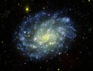 ![]() GALEX မှ ရိုက်ကူးသည့် NGC 300 ၏ ခရမ်းလွန်ရောင်ခြည်ဓာတ်ပုံ | |
