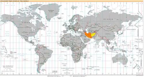 UTC+04:30: Blue (December), Orange (June), Yellow (all year round), Light Blue - Sea areas