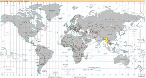 UTC+06:30: Blue (December), Orange (June), Yellow (all year round), Light Blue - Sea areas
